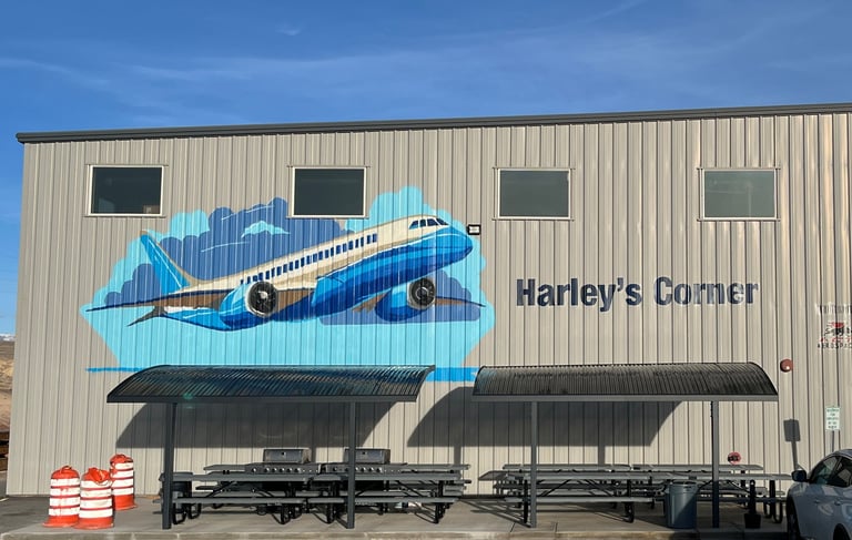 Medium: Outdoor latex paint (base), aerosol paint, acrylic paint, clear coat finish